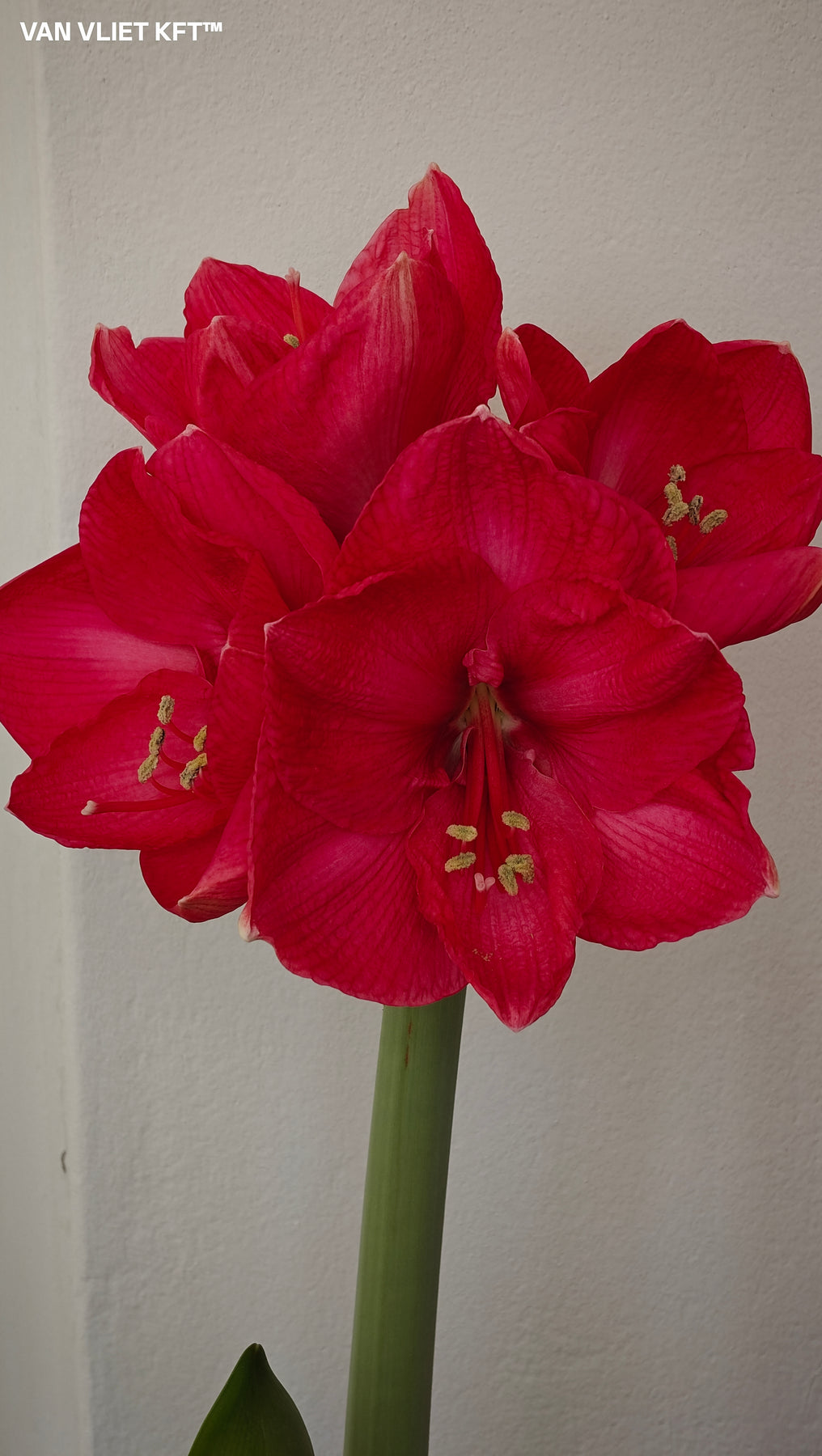 • Mély élénkvörös szirmok enyhén világosabb középrésszel és zöldes torokkal