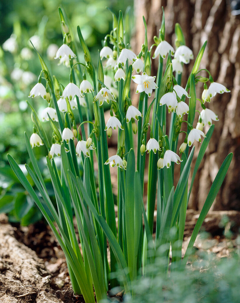 Virágzás: Elegáns, fehér harang alakú virágok zöld csúcsokkal – vidám látvány a tavaszi kertekben