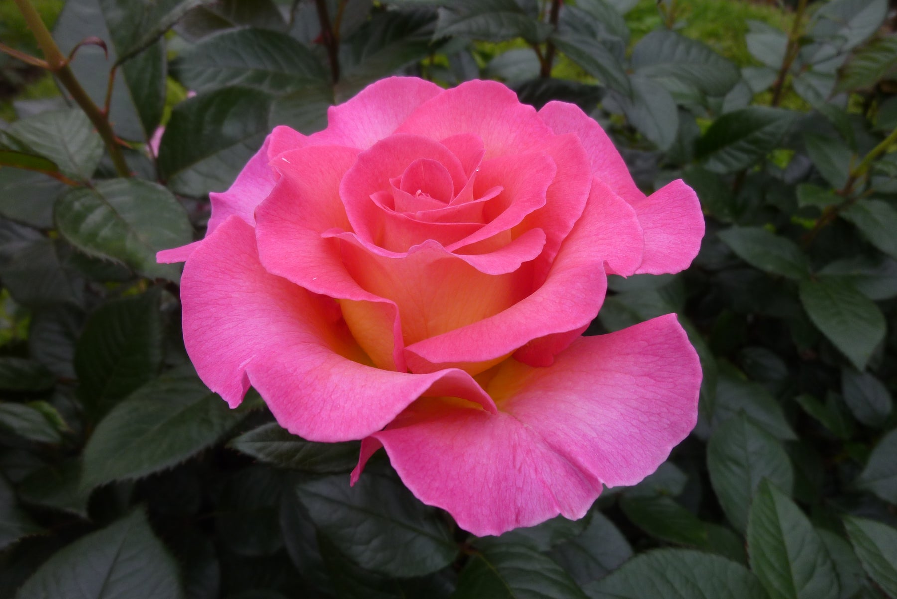 Ez a teahibrid rózsa erőteljes, felfelé törő bokrot nevel, nagy, méltóságteljes virágokat hozva intenzív mély rózsaszínben, ragyogó sárga szívvel kiemelve. A sötét, egészséges lombbal alkotott kontraszt minden virágot gyönyörűen kiemel a kertben.