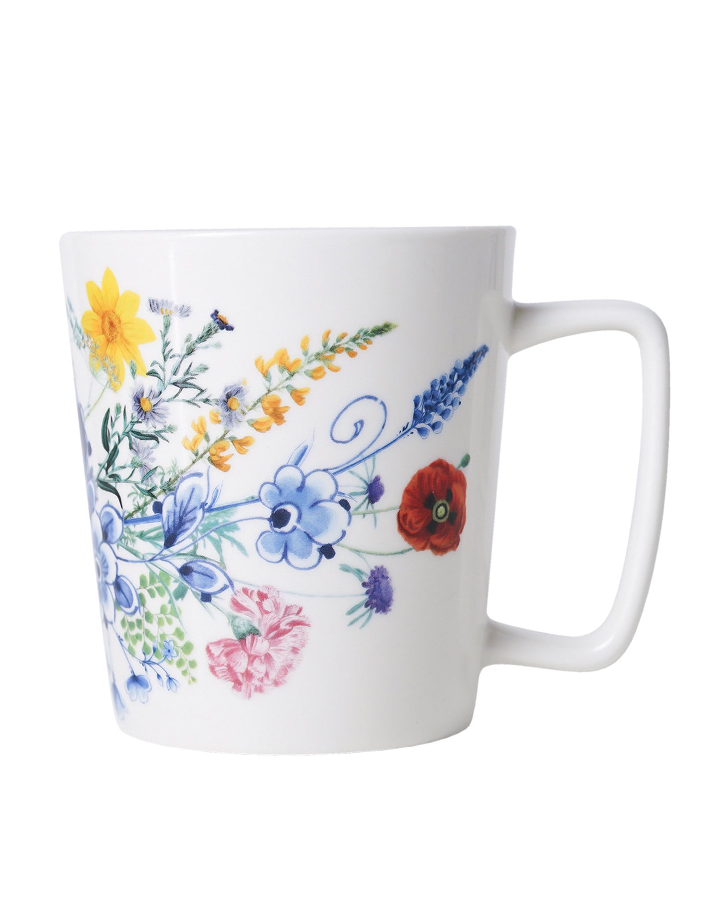 • Ceramic mug decorated with the “Flower Garden” floral design in Delft blue style