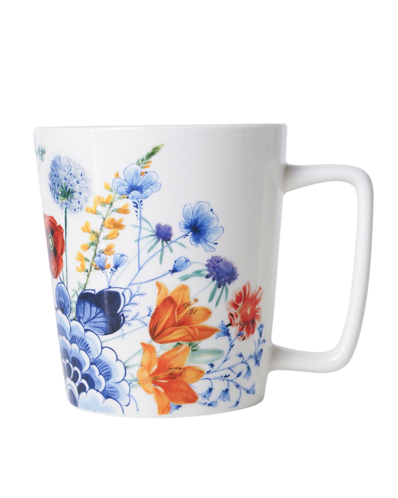 • Ceramic mug decorated with the “Flower Oasis” floral design in Delft blue style