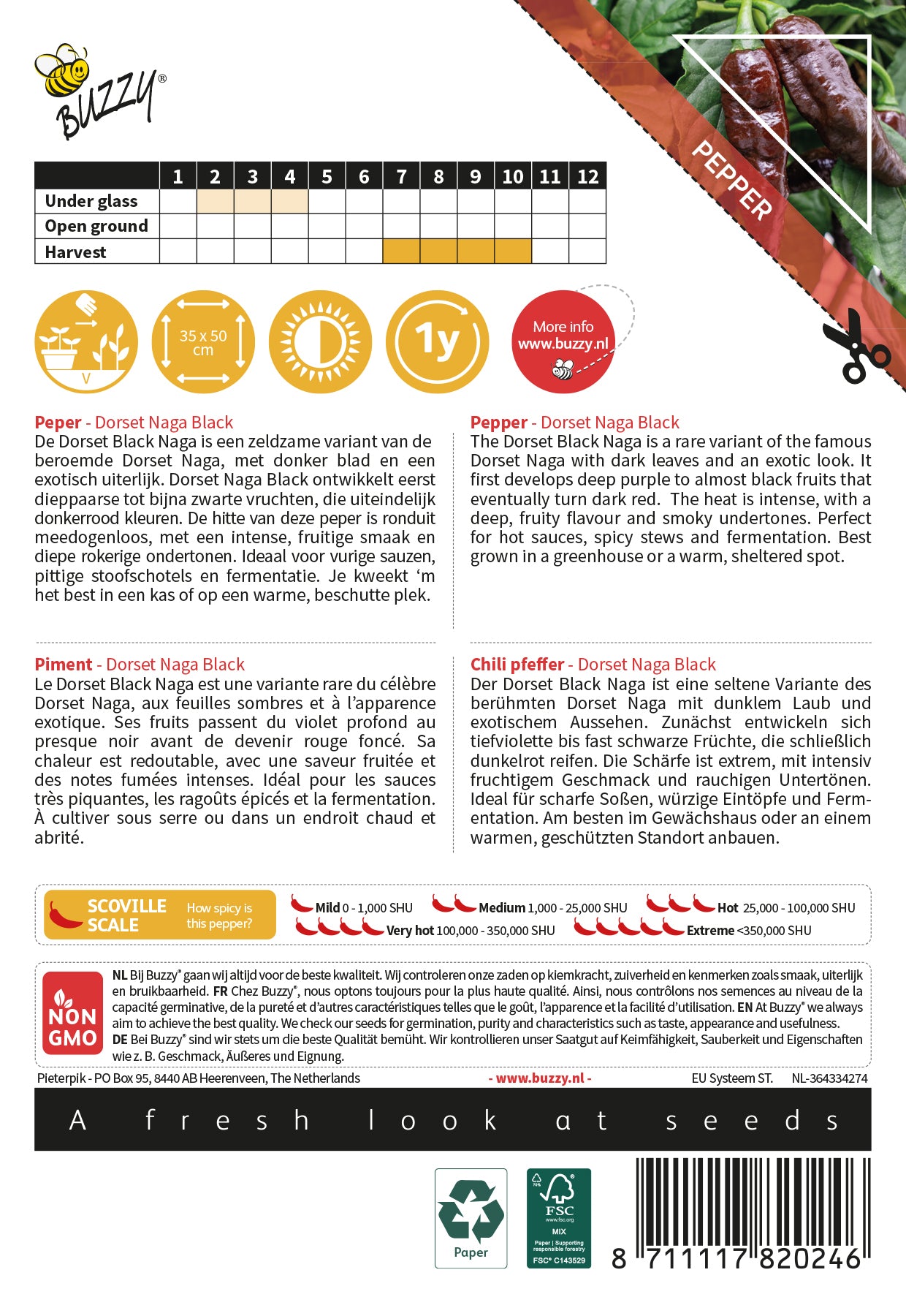 Origin: A rare and extreme chilli variety originating from the United Kingdom, selected from the famous Dorset Naga line