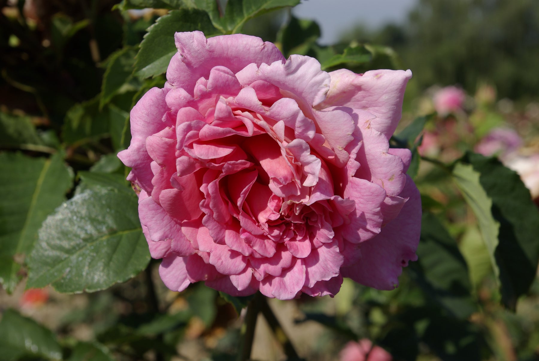 Its delicate pink flowers open into large, ruffled corollas with a charming crinkled appearance, evoking the beauty of traditional garden roses. Flowering is abundant and repeat blooming, bringing continuous elegance to the garden throughout the season.