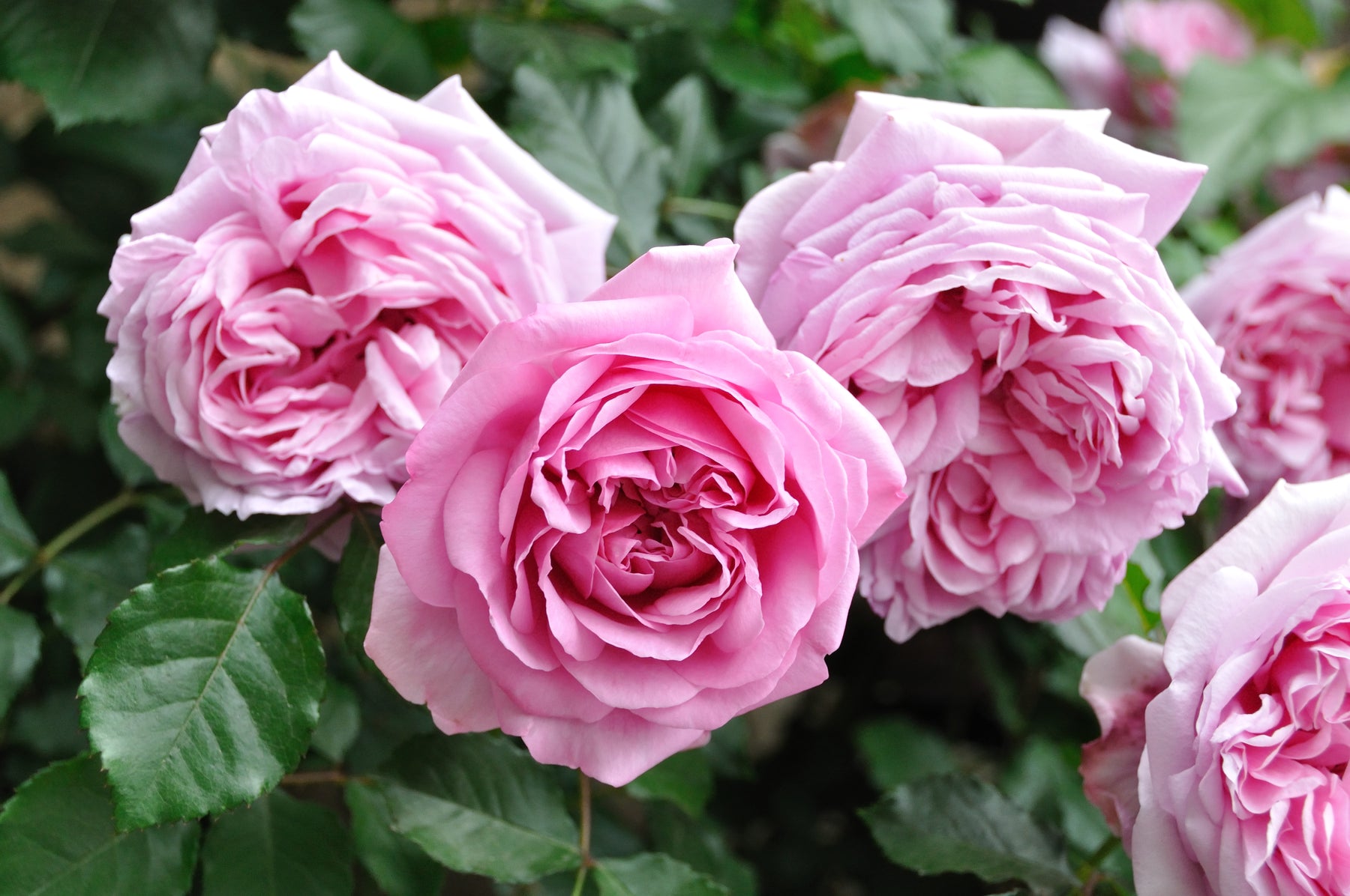 Its magnificent flowers are very double, composed of more than 100 delicately layered petals. Shaped like antique quartered roses, they display a vivid, luminous pink that captures the light beautifully.