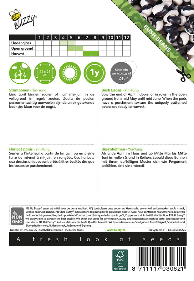 • Hosszú, keskeny, élénkzöld hüvelyek fekete-fehér babbal