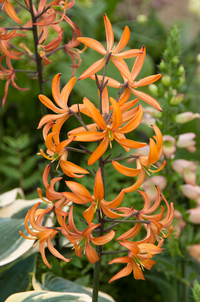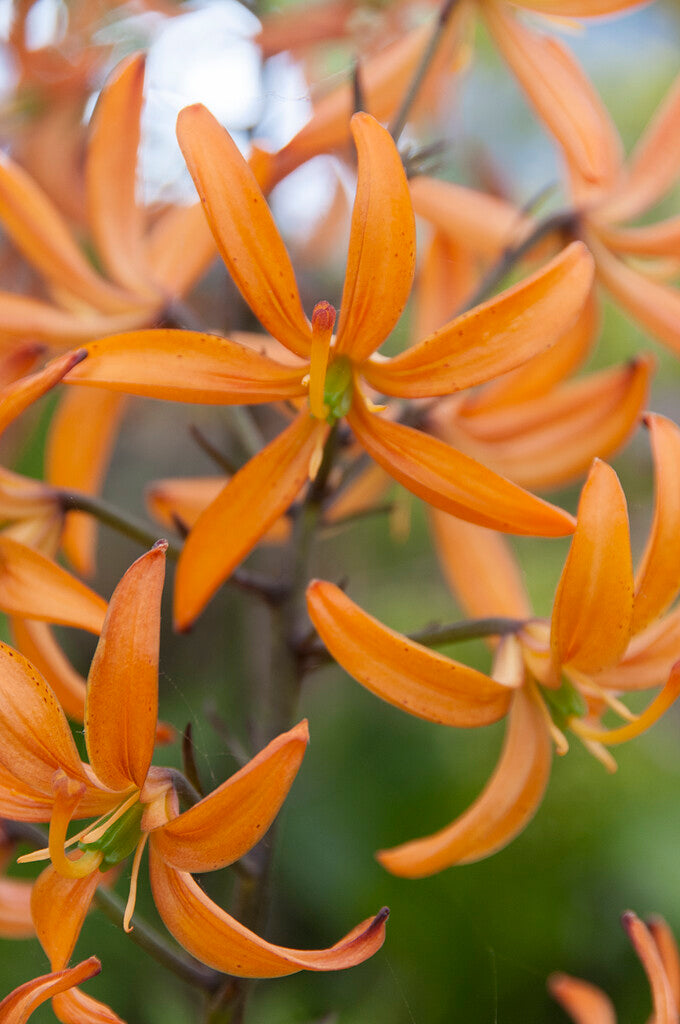 - Élénk narancsszínű virágok pettyezett szirmokkal, amelyek életet visznek a nyári kertbe